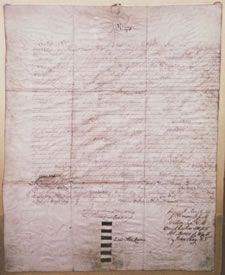 In the early part of the following year, the Charter was unceremoniously carried from Edinburgh to Stirling, where the Regiment had been deployed, in a soldier's (John Laughlan) knapsack, neatly folded to fit into the same. The creases made in the Charter when it was in the knapsack can still be seen today.